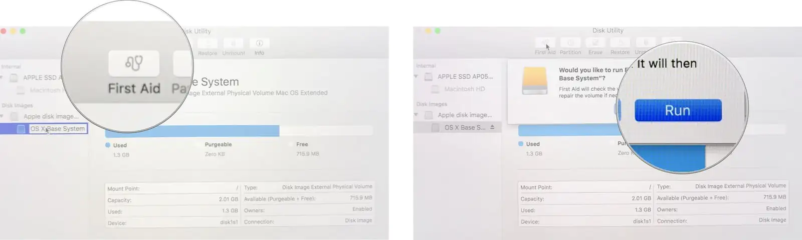 • Açılan ‘Disk İzlencesi (Disk Utility)’ penceresinde ‘İlk Yardım (First Aid)’ butonuna tıklayın.