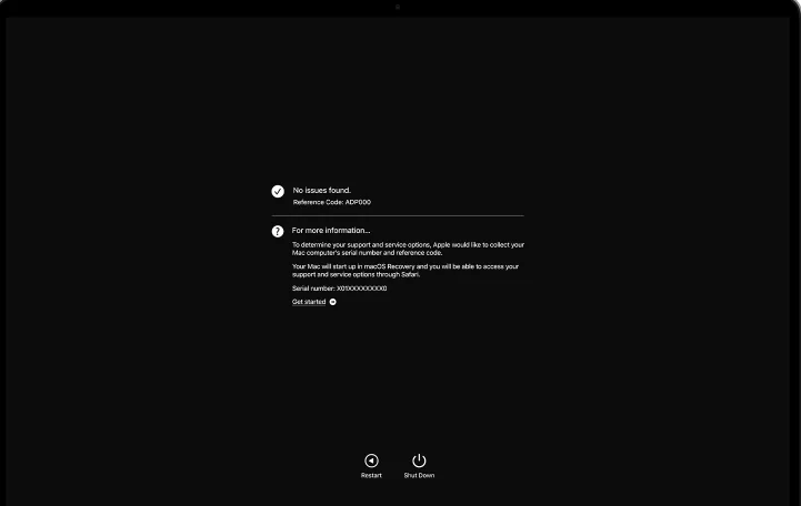 Servis ve destek seçenekleri hakkında bilgi almak isterseniz, Mac’inizin internete bağlı ise “Başla“yı tıklayabilir veya Komut (⌘)–G tuşlarına basabilirsiniz. Bu işlemi yaptığınızda Mac‘iniz yeniden başlatılır ve daha fazla bilgi içeren bir web sayfası karşınıza gelecektir. İşlemleriniz tamamlandığında Apple menüsünde Yeniden Başlat‘ı veya Sistemi Kapat‘ı seçmeniz yeterli olacaktır.