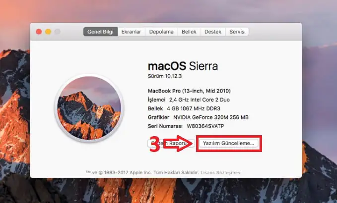 - Daha sonra ise, açılan ‘Sistem Tercihleri’ penceresinde ‘Yazılım Güncelleme…’ butonuna tıklıyoruz.