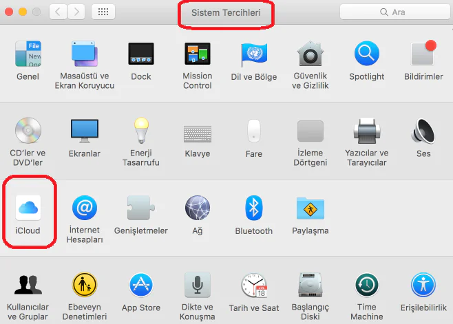 *Apple / Sistem tercihleri menüsüne gitmek.