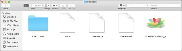 Sohbet geçmişi dosyaları chat.db, chat.db.shm, chat.db.wal vb. şeklinde isimlendirilmiştir (sohbet geçmişinin tamamını silmek istemiyorsanız, silmek istediğiniz dosyaları tek tek silebilirsiniz).
