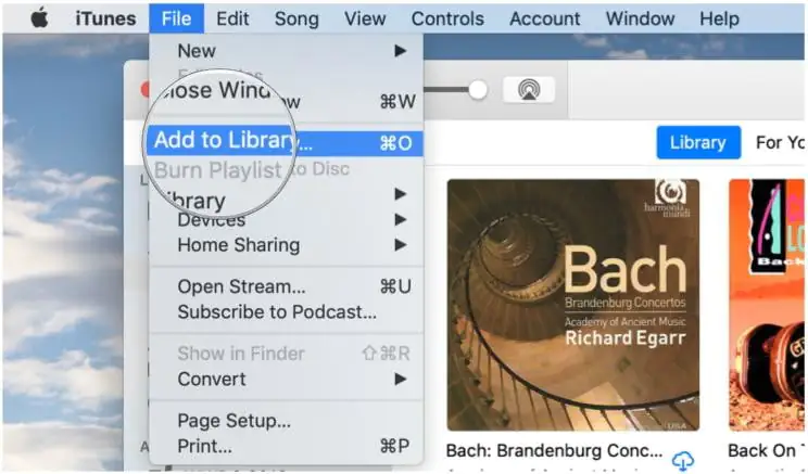 - iTunes’te ‘Dosya (File)’ menüsünden ‘Kütüphaneye Ekle (Add to Library)’ seçeneğini seçin.