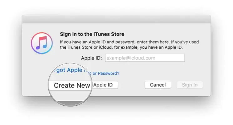 - ‘Yeni Bir Apple ID Oluştur (Create New Apple ID)’ butonuna tıklayın ve yeni bir Apple ID oluşturmak için adımları takip edin. Daha sonra yeni iTunes hesabınıza giriş yapabilirsiniz.
