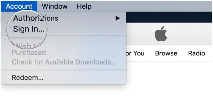 - Hesap (Account) menüsünden ‘Giriş… (Sign In…)’ seçeneğini seçin (tıklayın).