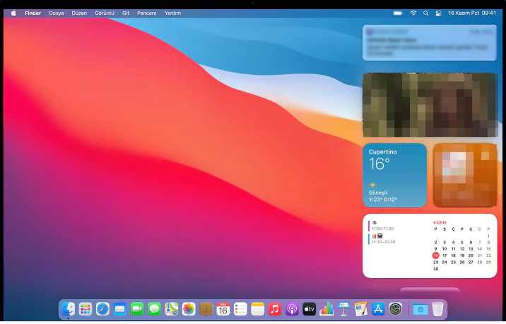 MacOS Big Sur sürümünde, yeniden tasarlanmış Bildirim Merkezi için işlevsel araç takımları eklenmiştir. Ayrıca kişiye özel kullanım sağlamak için seçebileceğiniz farklı boyutlarda sunmaktadır.