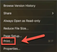 - Alternatif olarak Cmd+P tuşlarına basın.