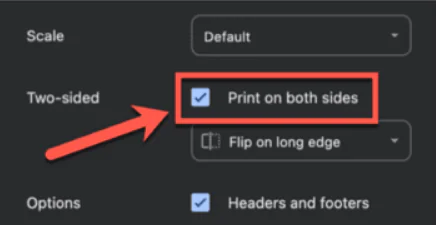 - Aşağı kaydırın ve Her İki Tarafa Yazdır seçeneğini işaretleyin.