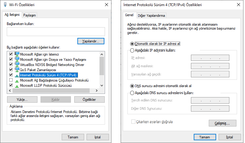 Otomatik olarak bir IP adresi almak için değiştirin. Eğer daha önceden bu tür ayar yapılmadıysa muhtemelen bu ayarlar otomatiktir. Bu adımı atlayabilirsiniz.