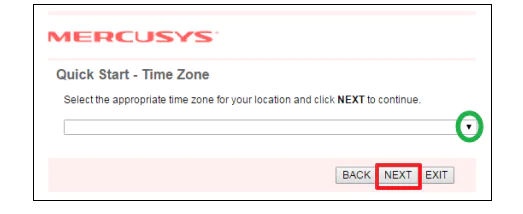 Adım 2: Modem yönlendiricinin saat dilimini yapılandırın ve ardından NEXT’e tıklayın.