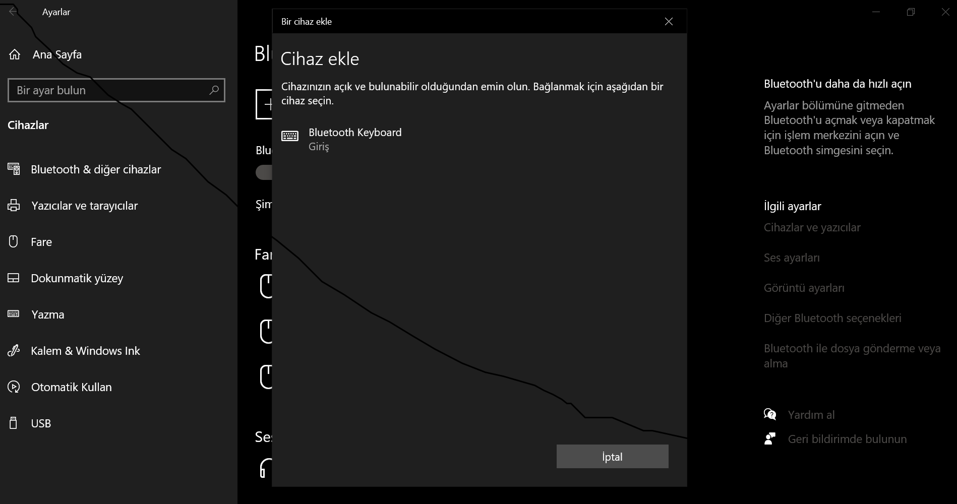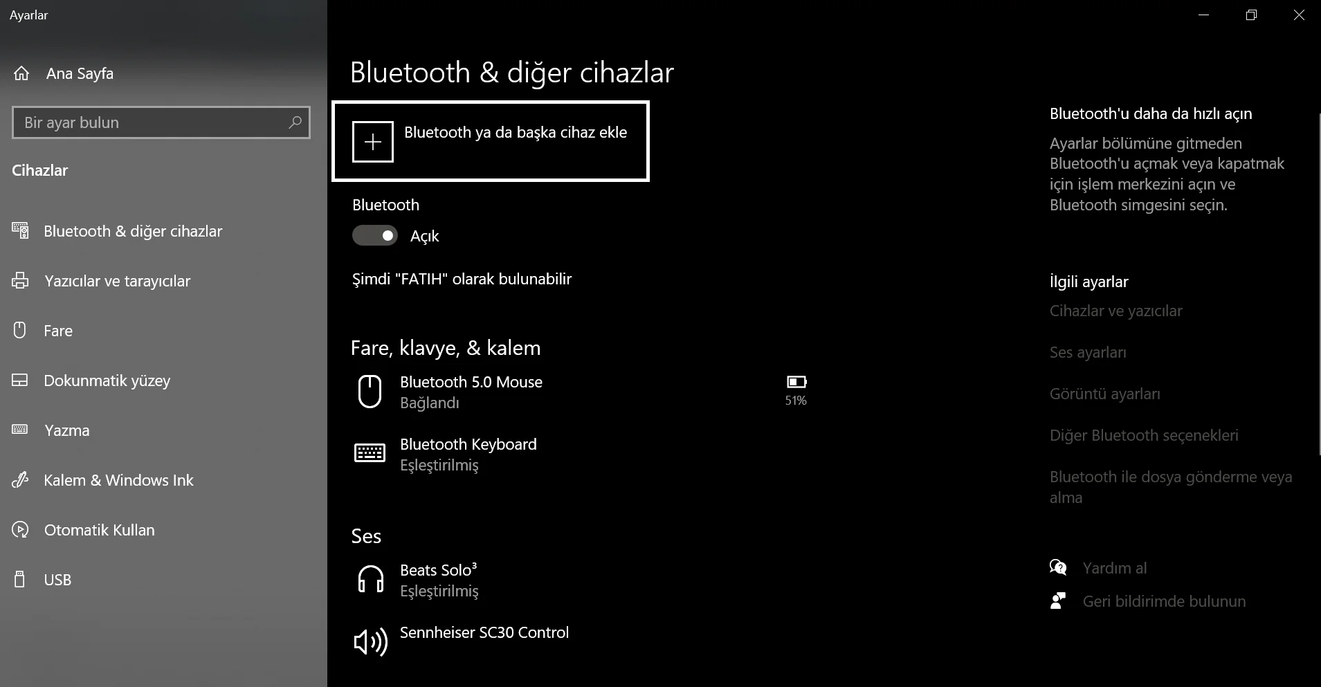 • Bu kısımda Bluetooth ya da Başka cihaz ekle seçeneğine tıklıyoruz.