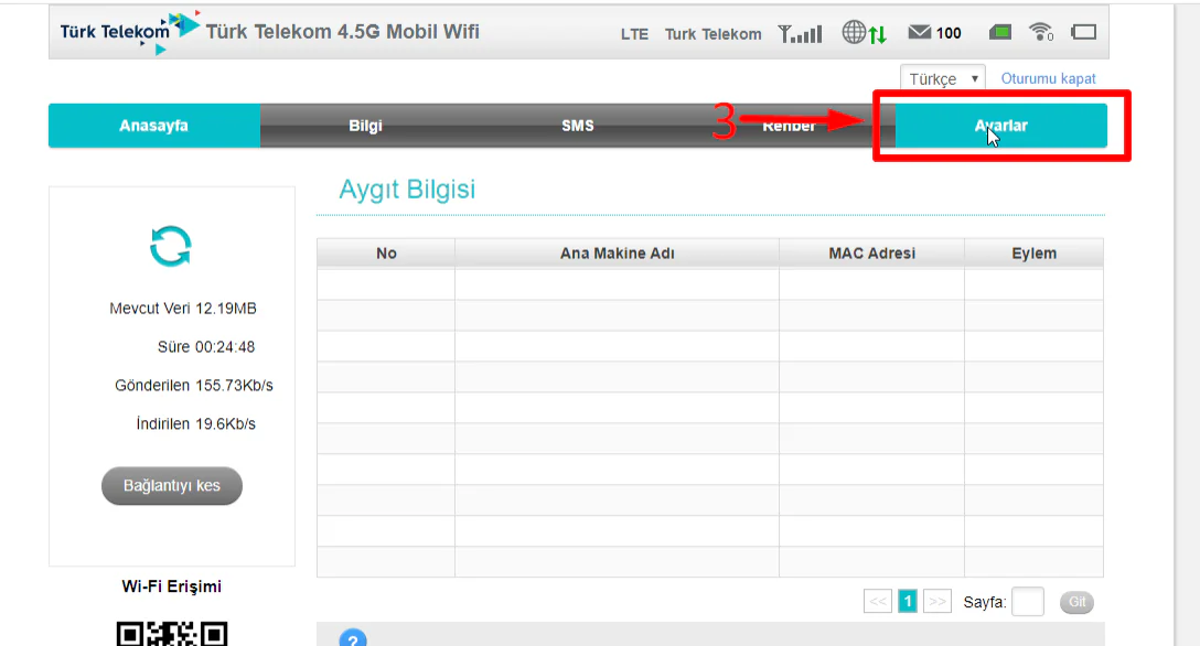 Bu ekranlarda şifre alanına turktelekom yazarak modem arayüzüne erişim sağlıyoruz.