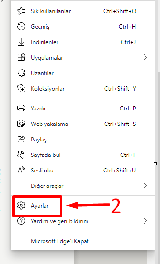 İşlemlerimize Microsoft Edge tarayıcımızı açarak başlıyoruz. Sonrasında sağ üstte bulunan menü çubuğunu tuşlayarak Ayarlar sekmesine geçiyoruz.