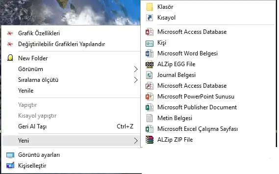 Öncelikle masaüstümüzde sağ tıklama ile yeni bir kısayol oluşturuyoruz.