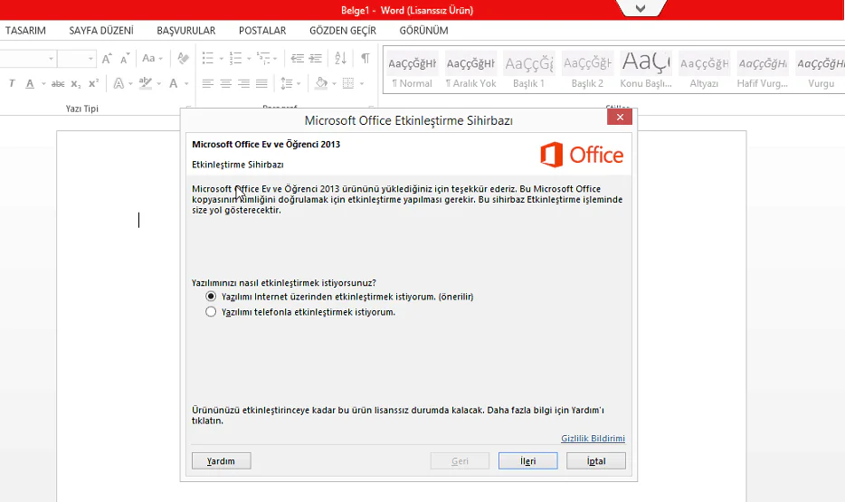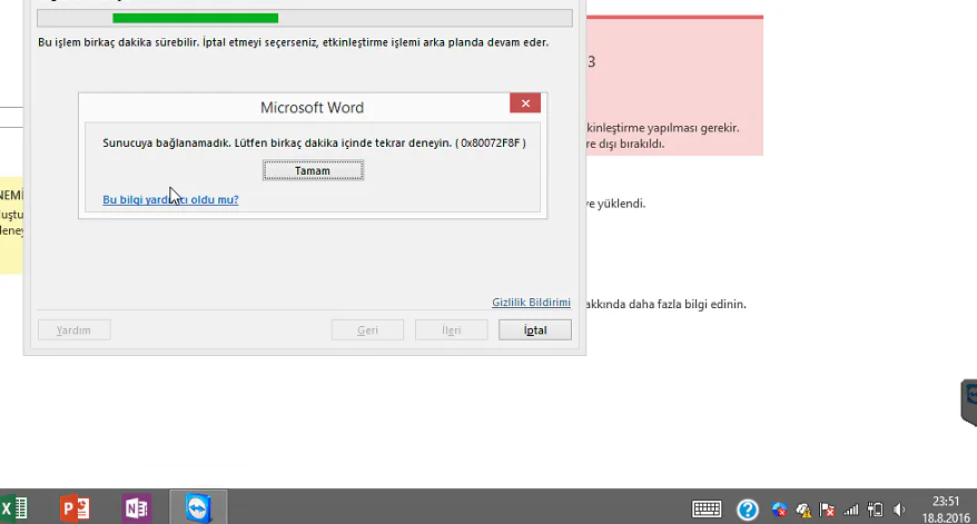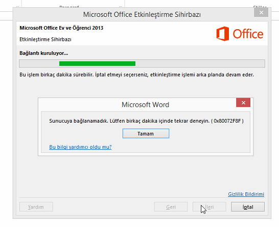 Microsoft Office lisansımızı etkileştiremiyorsak ve etkinleştirmeye çalıştığımızda “0x80072f8f” hatası alıyorsak ve “internet üzerinden etkinleştimek istiyorum” seçeneği geldiğinde,