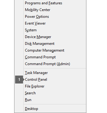 - Başlat düğmesini sağ tıklayın Windows 8 ve Windows 10’da (sol alt köşe) Windows Başlat düğmesi ve açılır menüden Denetim Masası’nı seçin.