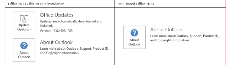 - Bir “Güncelleme Seçenekleri” öğesi görüyorsanız, Tıkla-Çalıştır kurulumunuz vardır. “Güncelleme Seçenekleri” öğesini görmüyorsanız, MSI tabanlı bir yüklemeniz vardır.