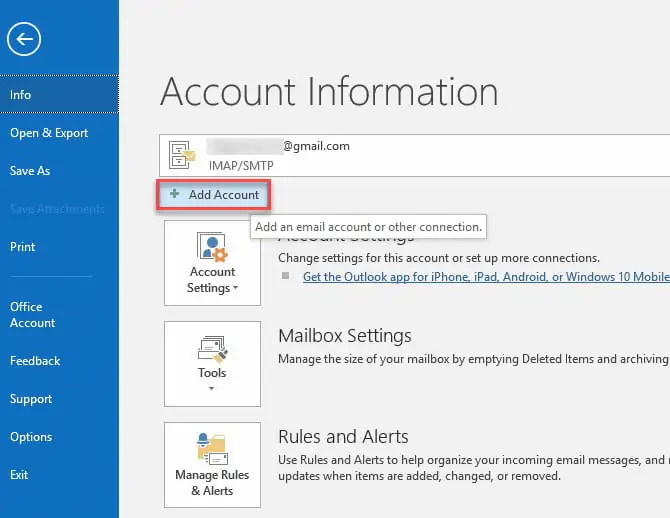 Adım 2: Gmail Hesabınızı Outlook’a Ekleyin