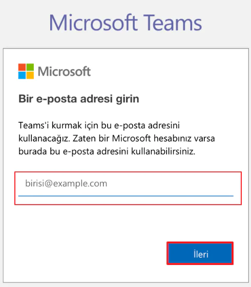 Size verilen e-posta adresini yazıp “İleri” butonunu tıklayalım.
