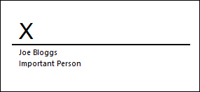 İmza seçeneklerinizi onayladıktan sonra, çarpı işaretli bir imza satırı ve nerede imzalanacağını belirten bir satır eklenir.