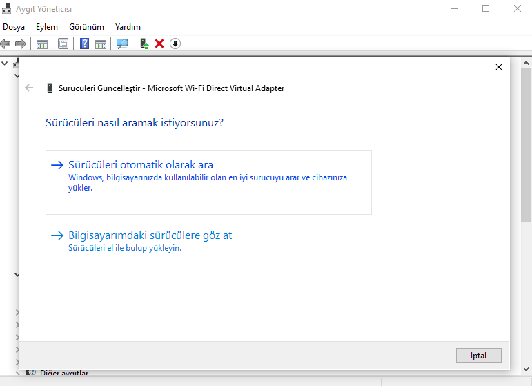 - İçerik menüsünden Microsoft Wi-Fi Direct Virtual Adapter 2 nin sürücüyü güncelle yapınız.