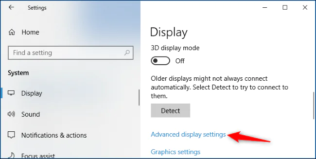 Sağ bölmede biraz aşağı kaydırın ve devam etmek için “Gelişmiş Ekran Ayarları” bağlantısını tıklayın.
