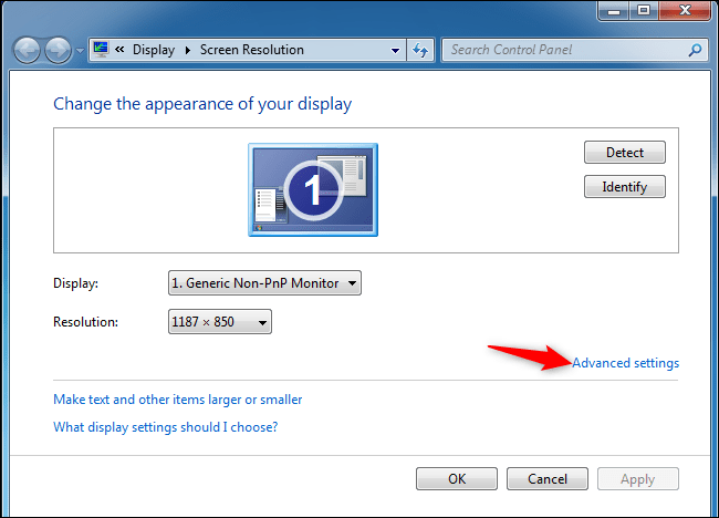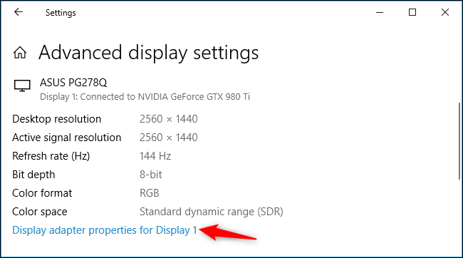 Burada yapılandırmak istediğiniz ekranın altındaki “Ekran Bağdaştırıcı Özellikleri” bağlantısını tıklayın.