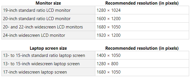 LCD Monitör Boyutuna Göre Çözünürlük