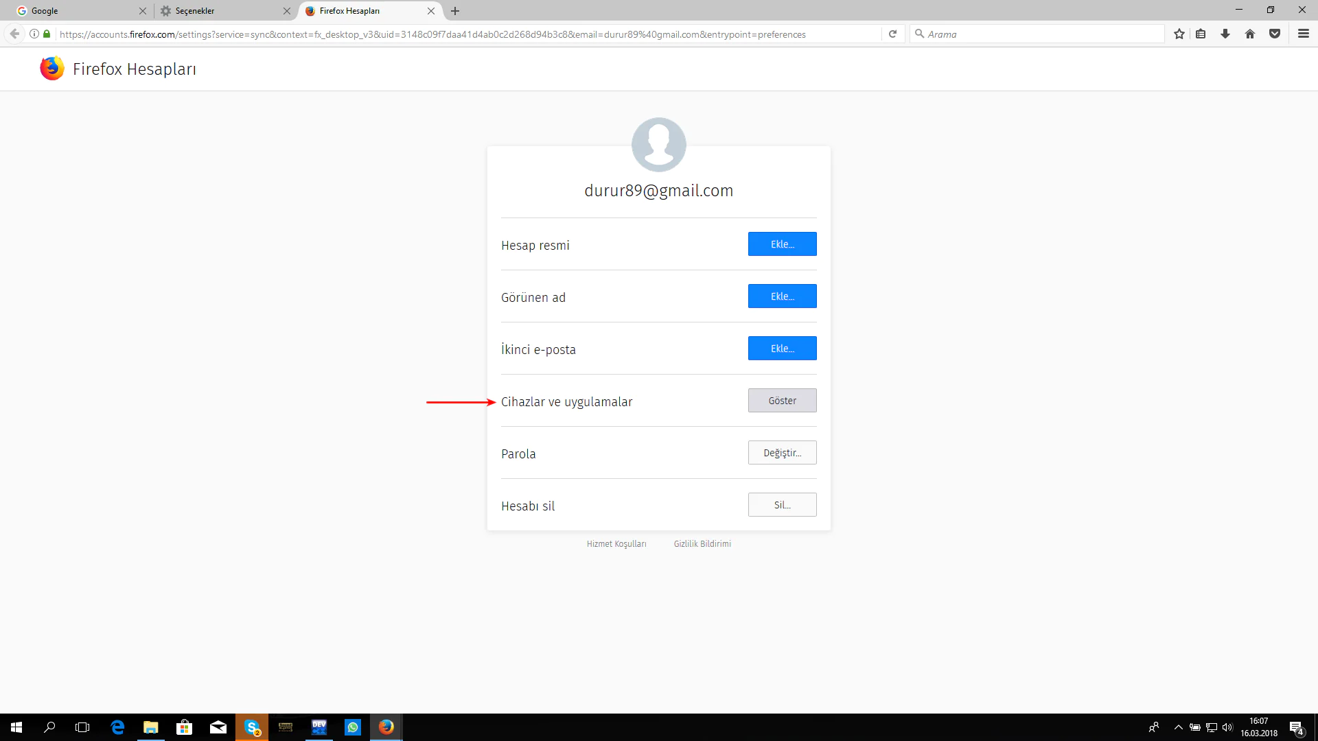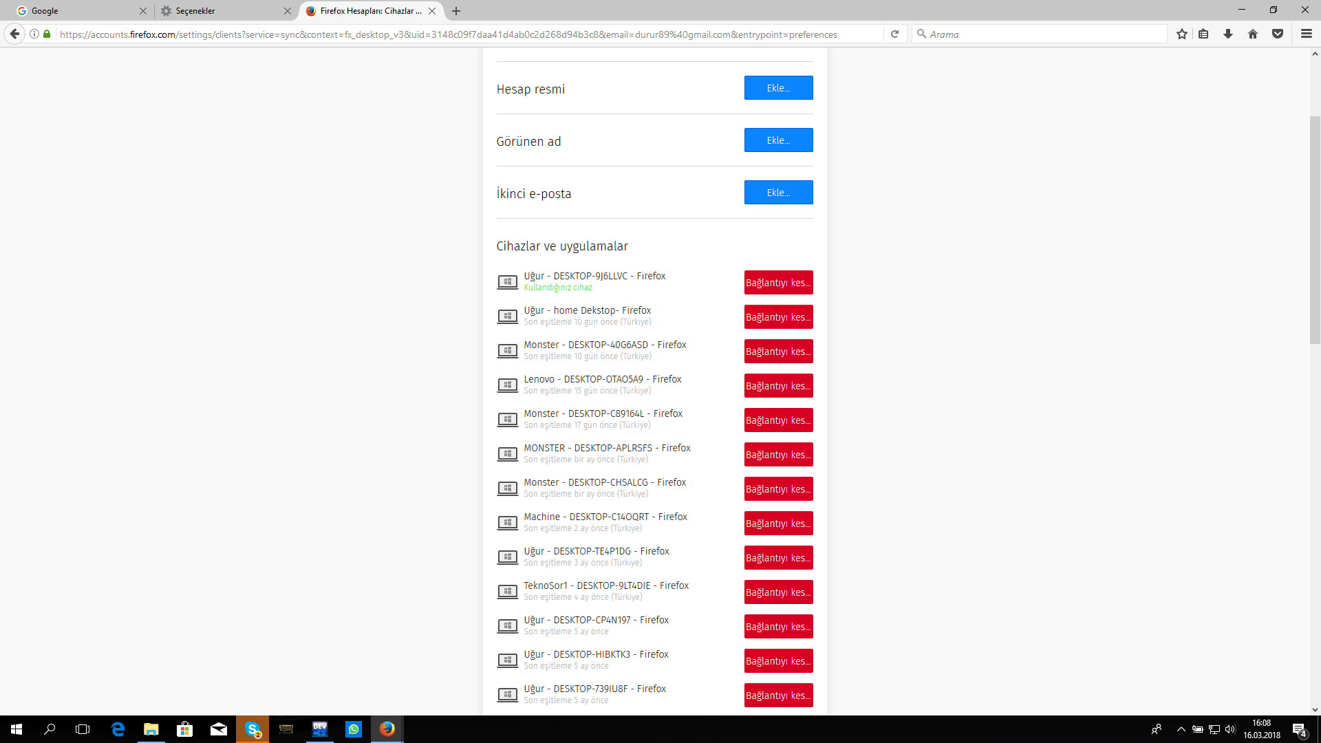 - Aşağıdaki ekran görüntüsünde gördüğünüz gibi, daha önce hesabınızı eşleştirdiğiniz tüm cihazlar burada görünmekte. Aktif olarak kullanmadığımız hesapları buradan silebiliyoruz. Böylece bilgilerimiz, şifrelerimiz sadece (aktif olarak) kullandığımız cihaz(lar)da kalır.