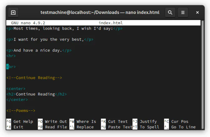 Genel olarak, nano, yeni başlayanlar için terminal metin düzenleme için harika bir seçenektir. Metin düzenleyicileri hakkında bildiklerinizin çoğunu atmak zorunda kalmadan, komut satırından dosyaları açmayı ve öncelikle bir klavye kullanarak gezinmeyi deneyebilirsiniz.