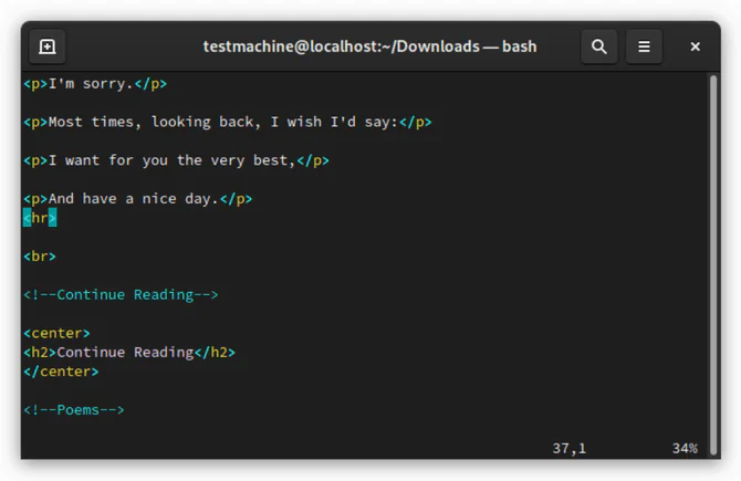 Davranışı öğrendikten sonra, Vim’in minimal estetiğinin belli bir güzelliği var. Terminal pencerenizin içinde yüzen dağınıklık yok. Ekranda gördüğünüz tek şey, metin dosyanızın içindeki metindir. Yazarken rahatsanız (ve komut satırında olduğunuzu düşünürseniz çok iyi olabilirsiniz), Vim’in arayüzü oldukça doğal gelebilir.