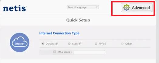 • Daha sonra sağ-üst köşede bulunan ‘Advanced’ butonuna tıklıyoruz. Giriş Orta kısımda bulunan Dil ayarları bölümünden modem ara yüz dil değişikliğini de yapabiliriz.