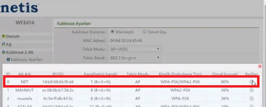 • Tarama bittikten sonra listelen kablosuz ağlardan, güçlendirmek istediğimiz ağ ismini bulup seçiyoruz.