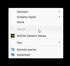 Windows 10 da direk sağ tık menüsünde Nvidia Denetim Masası seçeneği gelecektir.