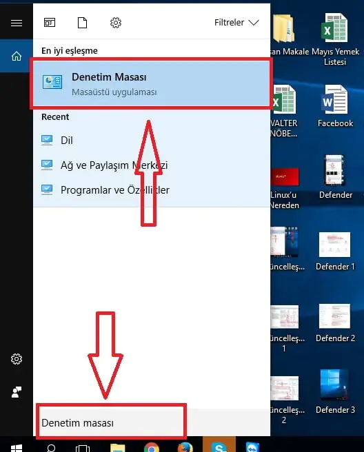 - Öncelikle, bilgisayarımızın sol tarafında yer almakta olan arama simgesine (mercek simgesi) tıklayıp, açılan kutucuğa ‘Denetim Masası’ yazıyoruz ve açılan menü listesinde ‘Denetim Masası’ menüsüne tıklıyoruz.