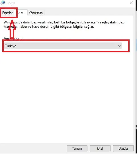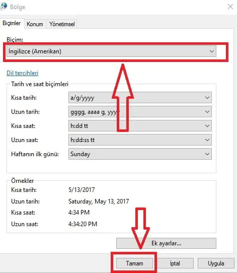- ‘Biçimler’ sekmesinde ‘Biçim’ menüsünde ‘İngilizce (Amerikan)’ seçeneğini seçip, ‘Tamam’ butonuna tıkladığınızda, ‘GeForce Experience’ açılmama sorununun çözümü ile alakalı işlemleri tamamlamış olacaksınız.