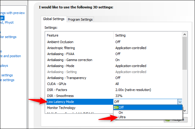 Ayarlar listesinde “Düşük Gecikme Modu” nu bulun. Ayarın sağındaki ayar kutusunu tıklayın ve listeden “Ultra” yı seçin.