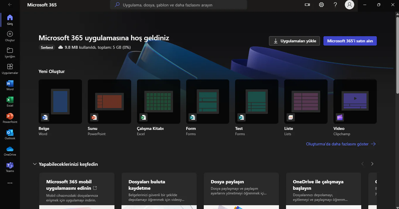 • Bulut Depolama: Aboneliğinizle birlikte gelen OneDrive, verilerinizin bulutta depolanmasını sağlar. Bu sayede, dosyalarınıza herhangi bir cihazdan erişebilir ve dosyalarınızı güvenli bir ortamda paylaşmanız mümkün.