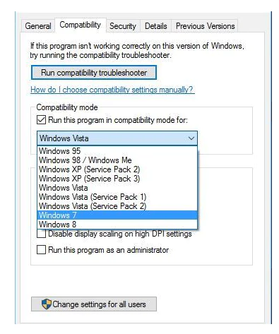 Doğrudan aşağıdaki anlık görüntüde gösterilen Uyumluluk sekmesini seçin.