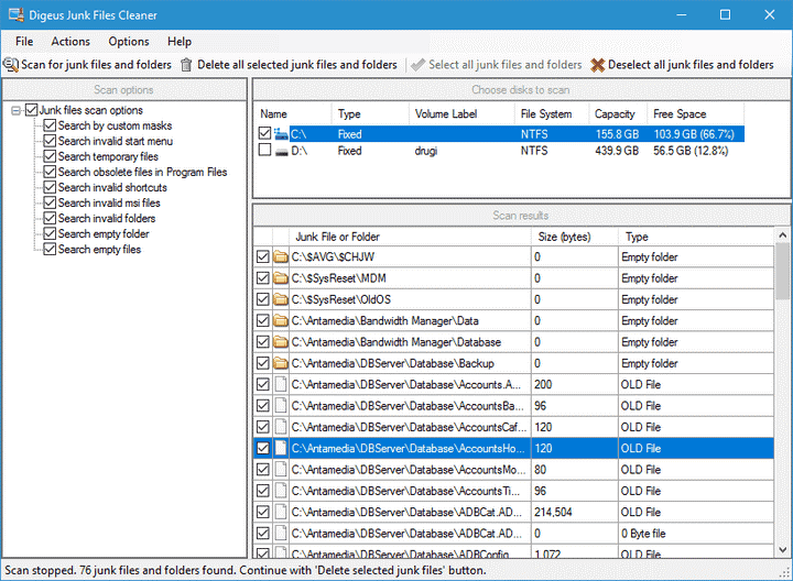 Araç, 50 farklı türden dosyayı temizlemenizi sağlar. Ayrıca geçersiz kısayolları, dosyaları, klasörleri, boş veya eski dosyaları ve geçici dosyaları kaldırabilirsiniz. Sürücünüzü taradıktan sonra, her bir önemsiz dosyanın konumunu görebilirsiniz. Ayrıca, o dosyanın dizinini Dosya Gezgini’n de bile açabilirsiniz .