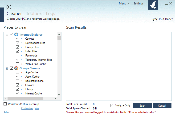 Synei PC Cleaner harika bir araçtır ve aynı zamanda ücretsiz ve taşınabilirdir, bu yüzden denememek için bir sebep yoktur.