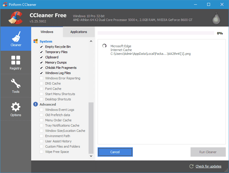 Muhtemelen PC’nizden çöpleri temizlemenin en ünlü aracı CCleaner’dır. Araç ücretsizdir ve tarayıcı önbelleğini, geçmişi, çerezleri ve geçici dosyaları kaldırmanıza olanak sağlar. Ayrıca, en yeni belgeleri, MRU’ları, küçük resim önbelleğini ve Görev Çubuğu Atlama Listeleri’ni kaldırabilirsiniz. Bu aracı kullanarak, sisteminiz tarafından oluşturulan birçok önemsiz dosyayı kaldırabilirsiniz; böylece geçici dosyaları, panoları, bellek dökülmelerini, chkdsk parçalarını, günlük dosyalarını, DNS önbelleğini, olay günlüklerini, eski ön tarama verilerini vb. temizleyebilirsiniz.