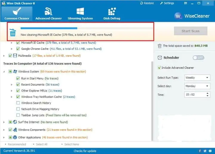 Bilgisayarınızdaki gereksiz dosyaları temizleyen başka bir araç Wise Disk Cleaner. Bu araç, geçici dosyaları ve bilgisayarınızda gerekmeyen her türlü sistem dosyasını temizleyebilir. Bu dosyaları kaldırarak bilgisayarınızı hızlandıracak ve sabit sürücünüzde boş yer açacaksınız. Ayrıca, bu araç tüm popüler tarayıcılar için İnternet geçmişini, önbellek dosyalarını ve çerezleri temizleyebilir. Ayrıca Windows ve diğer uygulamalardaki izleri de temizleyebilirsiniz.