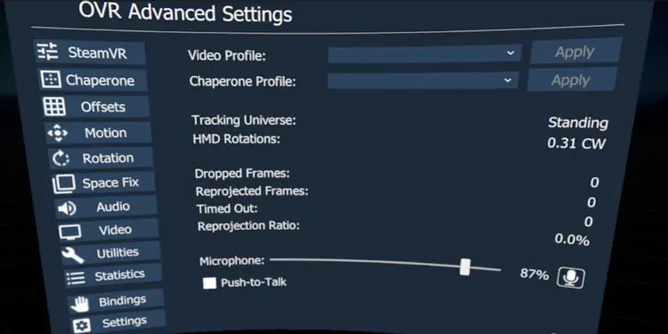 Hem Oculus hem de SteamVR, Bas-Konuş’u oyun bazında ele alır. Yani oyun yerel olarak bu özelliği desteklemiyorsa, genellikle şansınız kalmaz. Neyse ki, OpenVR Advanced Settings bunu da kapsıyor.