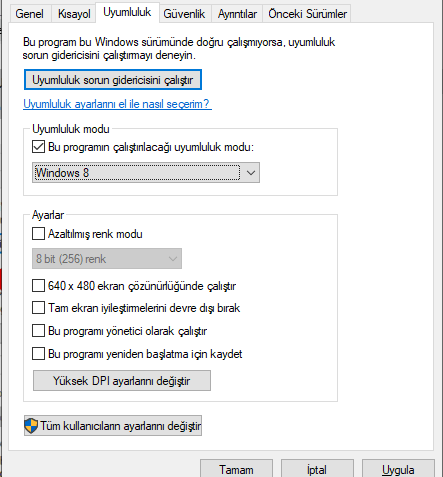 - Uyumluluk sekmesinde, bu programı uyumluluk modunda çalıştır seçeneğine tıklayın ve açılır menüden Windows 10 yükseltmenizden önceki işletim sistemini seçin.