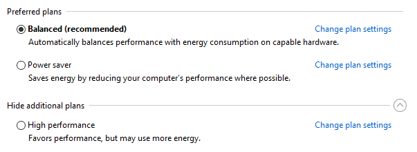 Güç seçenekleri, sözde, ihmal edilebilir etkileri nedeniyle genellikle yalnız bırakılır. Bazı oyuncular daha yüksek performanslı işler için ayar yaptıklarını iddia ederken, diğerleri PC güç ayarlarını değiştirirken herhangi bir fark görmez.