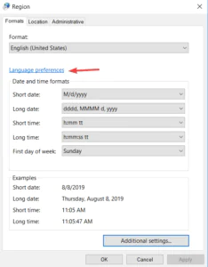 4. Dil tercihleri üzerine tıklayın.