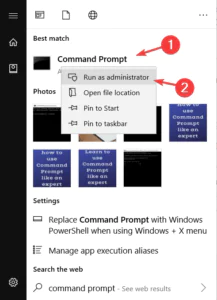 2. Komut İstemi’ne sağ tıklayın ve Yönetici olarak çalıştır’ı seçin.