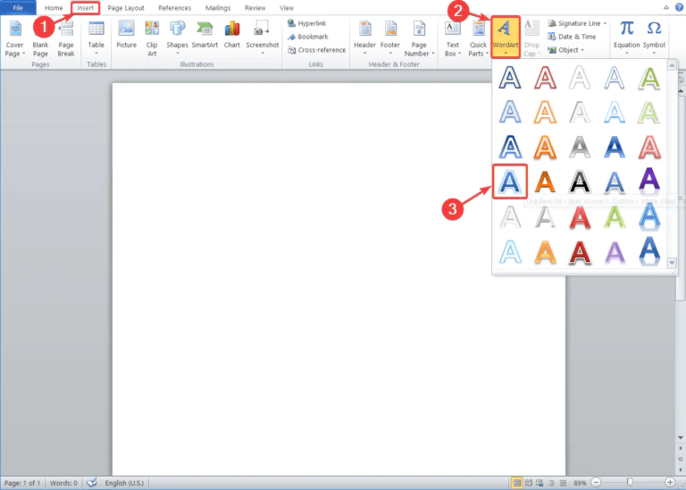 - WordArt tıklayarak ve istediğiniz herhangi bir yazı tipi seçin.