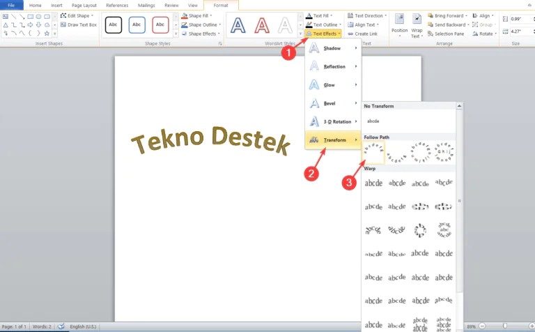 1. Microsoft Word’de eğri metin