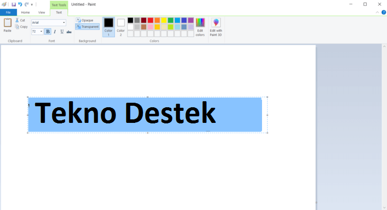 - Paint’i açın ve metninizi buraya girin. Büyük bir yazı tipi seçin (72 iyi olacak).